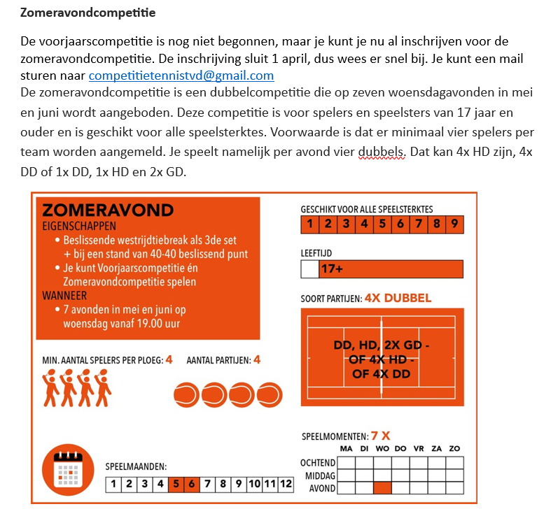 Je kunt je tot 1 april a.s. nog inschrijven voor de Zomeravondcompetitie.
